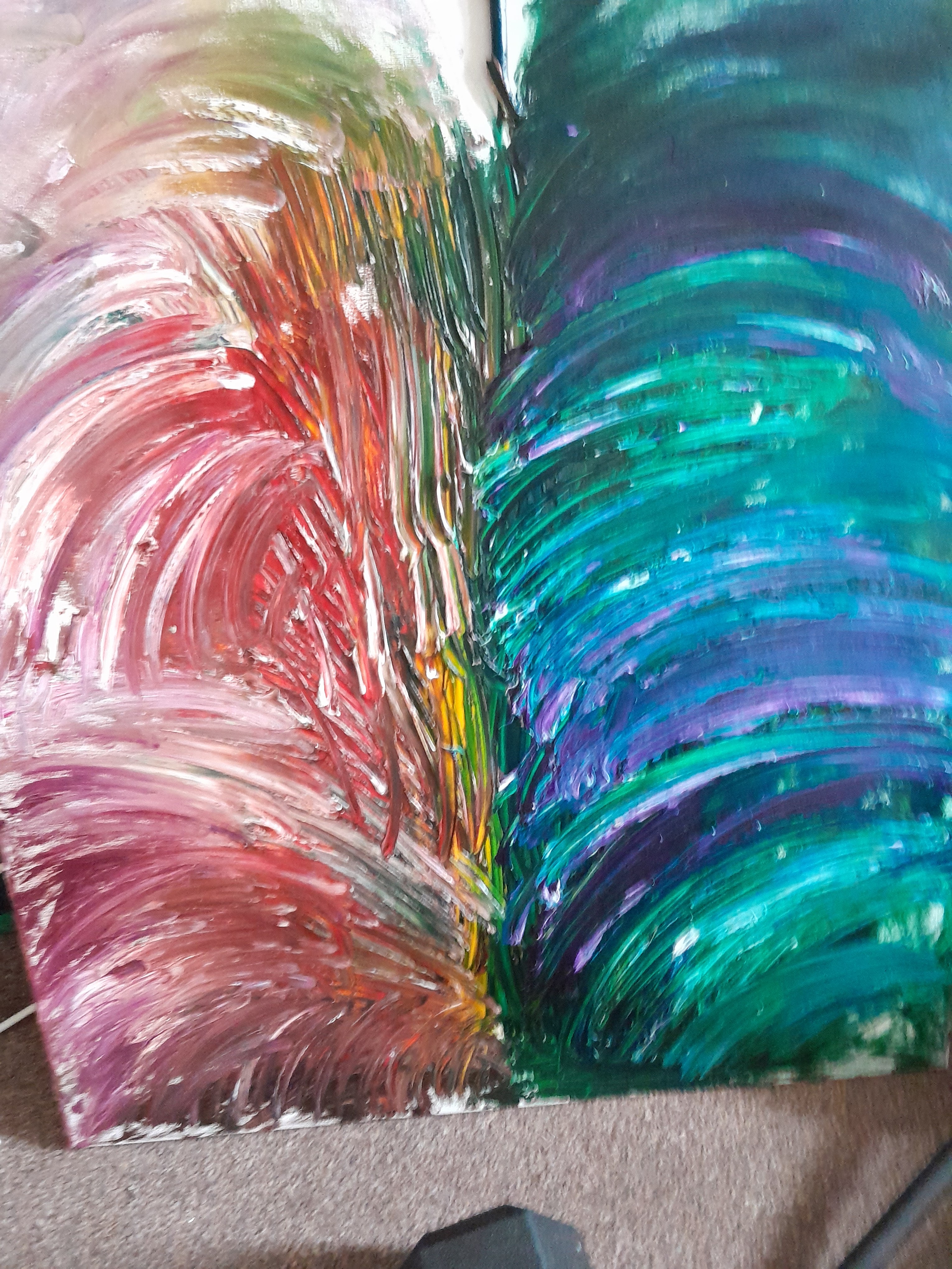 She cut her hand accidently. No problem – she would imbue the canvas with blood. It was like the time she sank a double vodka and had the presence of mind to open her sketch pad before being sick